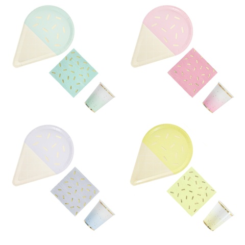 Ice Cream Shape Disposable Birthday Party Paper Plates Cute Sundae Party Tableware Supplies for Kids Boys Girls Toddler Birthday