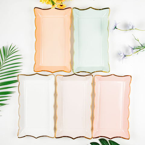 4Pcs 9Inches Disposable Tableware Green Dessert Dish Rectangle Paper Plate for Birthday Carnival Wedding Decor Baby Shower Party