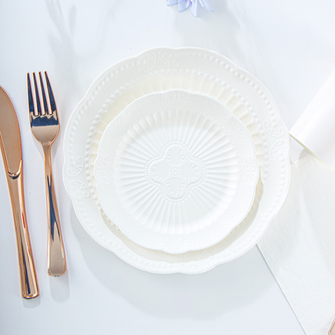 Custom Paper Plate High Grade Durable Disposable White Gold Border Dinnerware Round, Hexagon, Square Eco-friendly for Parties