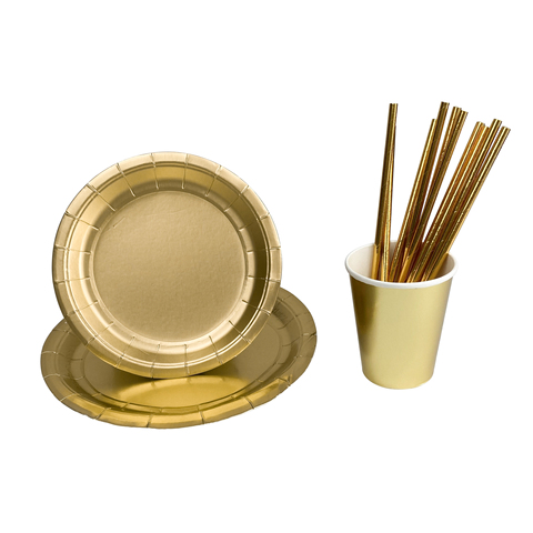 Wholesales Wavy Grain Paper Plates Dishes Cups Napkins Straws Sets Golden Reflective Glisten Food Level Paper