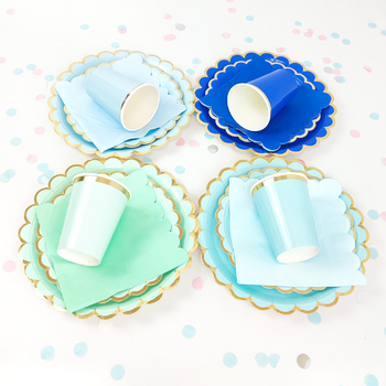 Disposable Round Blue & Green Mixed Color Paper Blue Color Mixed Tableware Set Birthday Wedding Celebration