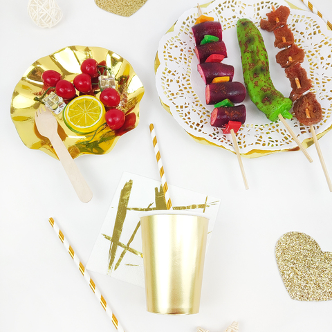 Disposable Gold Foil Paper Tableware Set Bio Paper Cup Napkin for Birthday Wedding Party