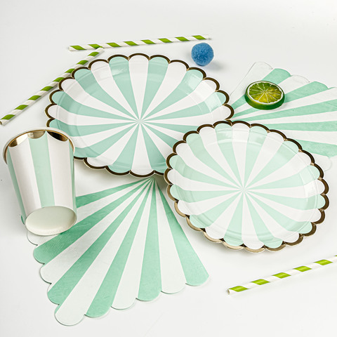 Dùng Một Lần Giấy Tấm Bronzing Sọc Sinh Nhật Đảng Trang Trí Nội Thất Trái Cây Tấm Bánh Khay Bộ Đồ Ăn Sinh Nhật Nguồn Cung Cấp Bên